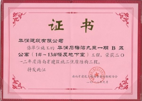 2012年度四川省优秀安装质量奖(蜀安杯)