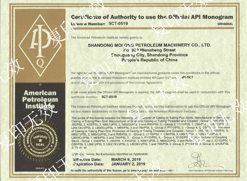 API认证证书APISpec5CT(油管套管)