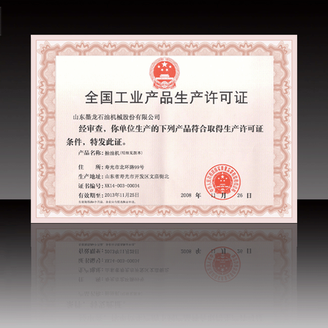 全国工业产品生产许可证(抽油机)