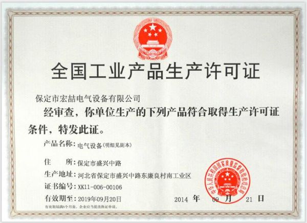 | 持证单位: 保定市宏喆电气设备有限公司 |